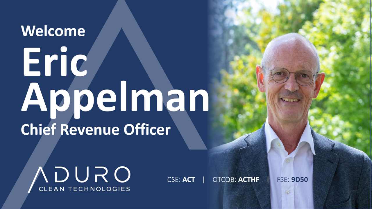 « Nous sommes on ne peut plus ravis d'accueillir M. Appelman dans la famille Aduro », a déclaré Ofer Vicus, PDG d'Aduro Clean Technologies. « M. Appelman rejoint Aduro à un moment charnière de notre parcours, alors que nous nous concentrons sur notre programme d'engagement des clients et des parties prenantes ; son leadership et son expertise ajoutent une valeur considérable à l'équipe de direction et s'alignent parfaitement sur les objectifs stratégiques de la Société en Europe et dans le monde. Il sera également secondé par les excellentes équipes de direction, de recherche et des opérations, qui sont toutes très désireuses de continuer à développer, à démontrer et à mettre en œuvre la plateforme technologique d'Aduro à travers le monde. »