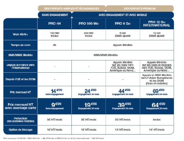 EI Telecom lance en effet quatre forfaits à destination des pros, à partir de 14,99 euros HT par mois. Les clients visés sont d’abord ceux de ses filiales CIC Mobile et Crédit Mutuel Mobile.