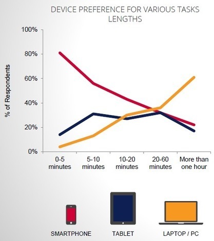 Les mobinautes préfèrent leur smarphone pour les tâches qui nécessitent moins de 10 minutes de leur temps mais préfèrent leur ordinateur pour celles qui demandent plus de 20 minutes.