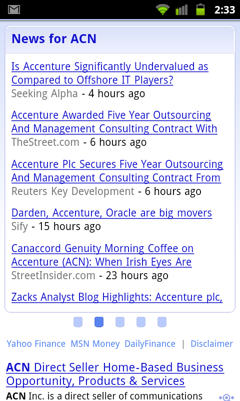 If you swipe the card from right to left, you’ll get the latest financial news for the company.