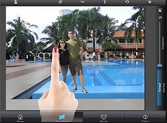 Superimpose (US$0.99) does a first class job of taking part of one photo and adding it to another. It's great for removing your best friend from a