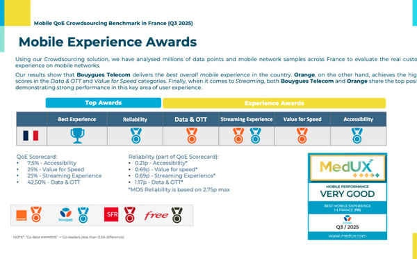 L’étude MedUX 2025 confirme que la France figure parmi les meilleurs pays européens en matière de 5G, avec Bouygues Telecom en tête sur la qualité globale d’expérience et Orange leader sur les débits...